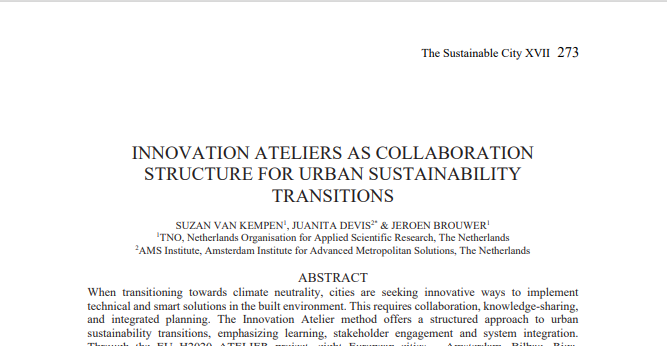 When transitioning towards climate neutrality, cities are seeking innovative ways to implement technical and smart solutions in the built environment. This requires collaboration, knowledge-sharing, and integrated planning. The Innovation Atelier method offers a structured approach to urban sustainability transitions, emphasizing learning, stakeholder engagement and system integration. Through the EU H2020 ATELIER project, eight European cities – Amsterdam, Bilbao, Riga, Bratislava, Copenhagen, Krakow, Matosinhos and Budapest – have established Innovation Ateliers in their respective ecosystems. These Innovation Ateliers were dedicated to the realization of Positive Energy Districts (PEDs) in the cities, by leveraging transnational cooperation (integrated knowledge sharing between the different cities and Innovation Ateliers) and local stakeholder collaboration. PEDs require not only adaptive technical and smart solutions but also seamless integration into the existing physical, social, governance and financial urban context. To ensure social support and alignment among stakeholders, a robust collaboration structure is essential. The Innovation Atelier approach fosters a shared vision, co-creation of solutions, and the active participation of the quadruple helix partners: government, industry, academia, and citizens. This paper demonstrates how Innovation Ateliers can facilitate capacity building for local governments and partners, accelerate realization, and develop knowledge sharing networks that can be sustained beyond the lifetime of the project. The Innovation Atelier approach provides a replicable framework for cities tackling complex sustainability challenges. By establishing enduring collaboration structures, cities can move beyond one-off solutions and create adaptive, long-term strategies for climate mitigation and adaptation. Drawing from the ATELIER experience, this paper highlights how cities, when working together from the outset, can amplify the impact of sustainable interventions. By showcasing practical outcomes best practices, cities inspire other cities to adopt collaborative, systems-based approaches to climate action.
