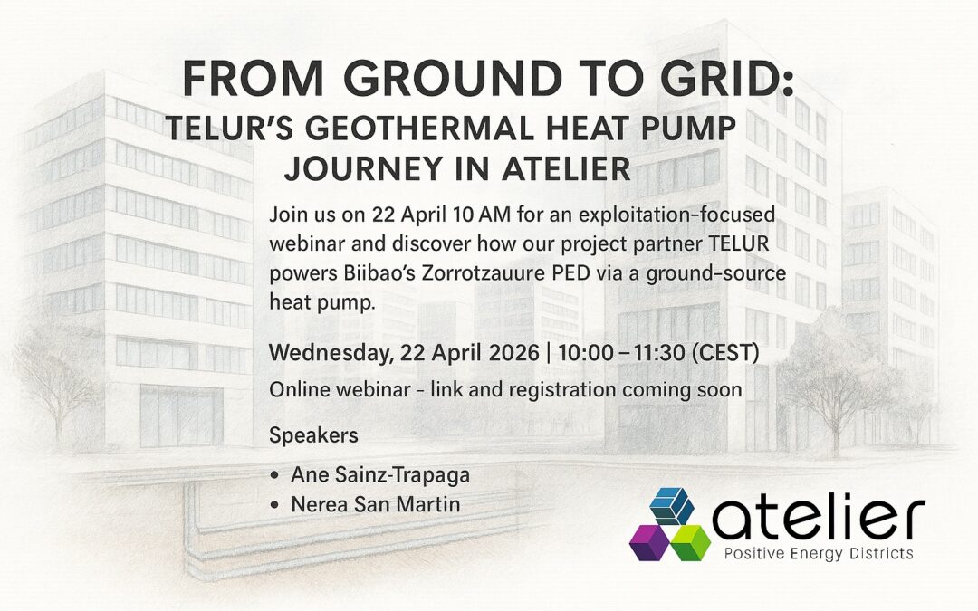 How do cities turn stable underground temperatures into reliable, low‑carbon comfort for buildings – year‑round and at scale? In ATELIER, TELUR demonstrates a ground‑source heat pump (GSHP) approach that harnesses the earth’s thermal stability to deliver heating, cooling and domestic hot water with very high efficiency and extremely low CO₂ emissions. In Bilbao’s PED at Zorrotzaurre island, three areas (north, centre and south) are being connected via a low‑temperature geothermal loop to meet local thermal demand and export surplus – forming a backbone for a Positive Energy District. Expect practical insights on design choices (closed/open/hybrid loops), performance, lifecycle considerations, and where GSHPs make the biggest impact in urban redevelopment and retrofit. TELUR will also touch on challenges (upfront investment, perceived complexity) and evolving business models (ESCO delivery, low‑temperature district networks).
