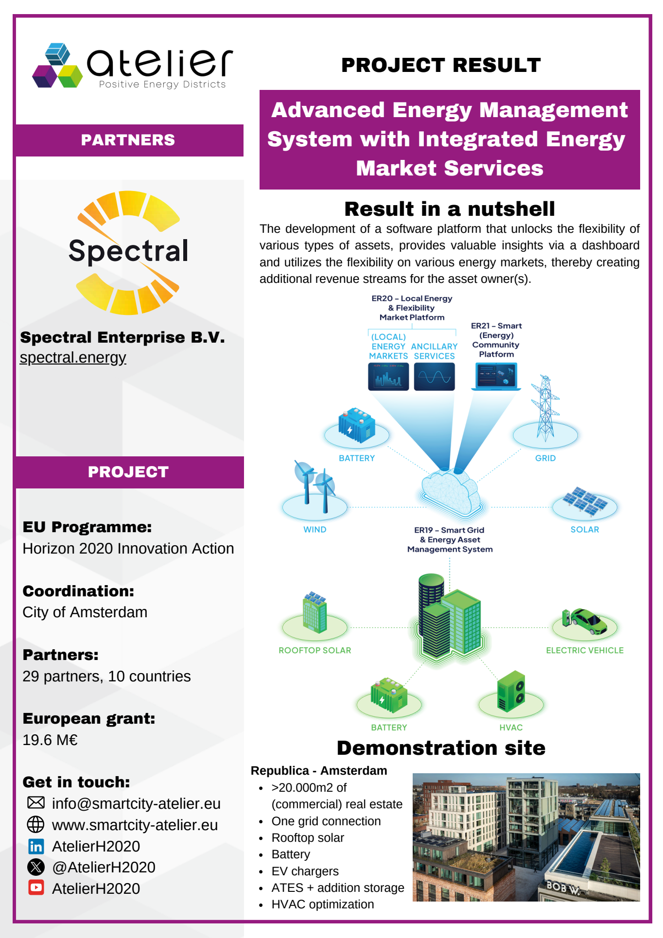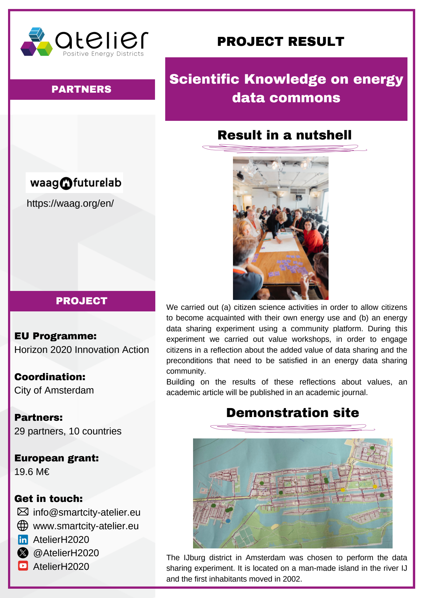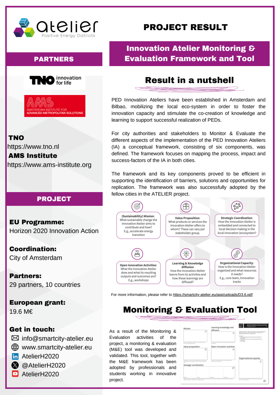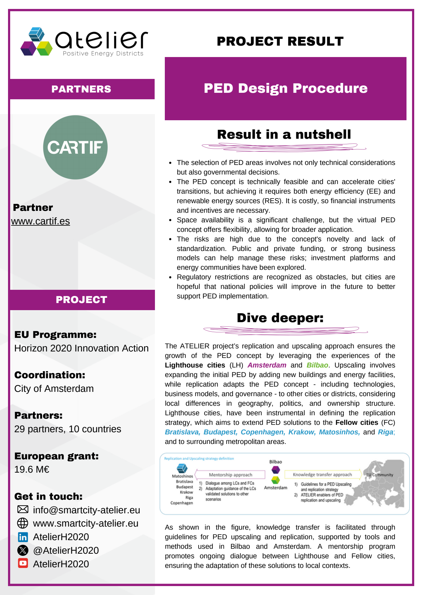 Solution Factsheets PED Design Procedure Massive Open Online Course on Positive Energy districts - A start guide Local Energy Cooperative - Governance Structure Life Cycle Assessment (LCA) tool for Positive Energy Districts (PED) integrated Energy Management System (iEMS) PED Design Procedure Innovation Atelier - PED design consultancy Software in the Loop (SIL) Lab Ground Source Heat Pump (GSHP) Advanced Energy Management System with Integrated Energy Market Services Scientific Knowledge on energy data commons Smart Iteration Tools Innovation Atelier Monitoring & Evaluation Framework and Tool Methodology for Positive Energy District promotion in the Basque Country PED Innovation Atelier Model Cities4Zero v2.0 PED concept replication strategy Model portfolio for energy systems impact assessment at district level